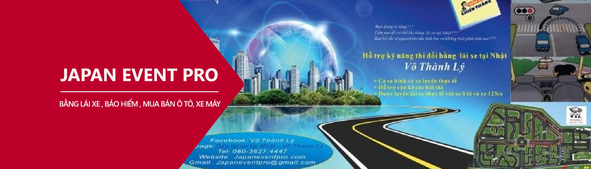 JAPAN EVENT PRO là công ty hoạt động về lĩnh vực bằng lái xe , bảo hiểm , mua bán trao đổi xe oto, xe máy cũ, mới.. Dịch vụ sửa chữa, cúu hộ với đội ngũ nhân viên , cộng tác viên nhiệt huyết , kinh nghiệm ,tận tình.