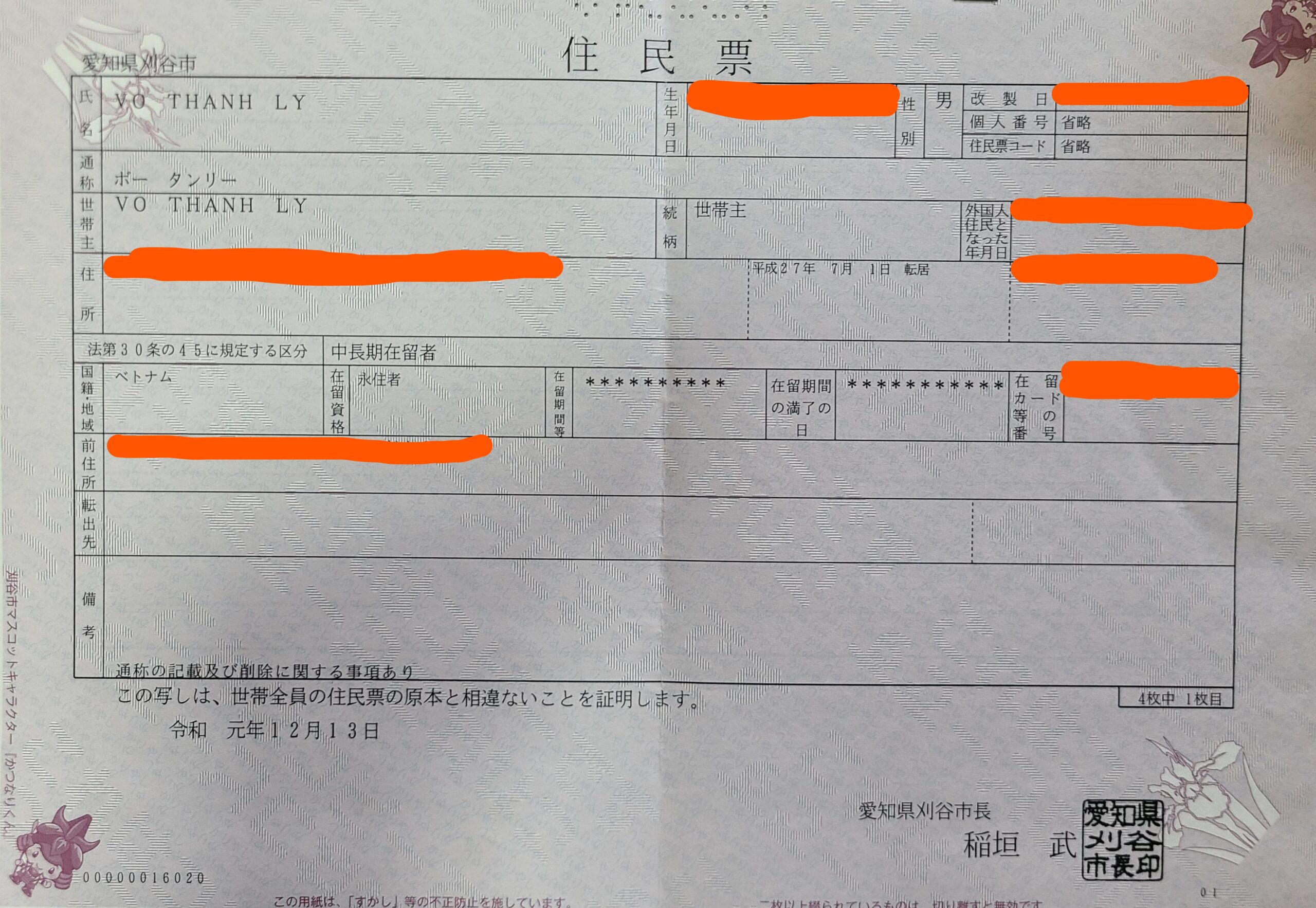 6/ Bản gốc Juminhyo, copy thẻ cư trú