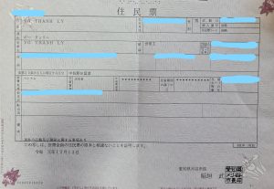 Cho các bạn xem mẫu giấy cư trú Juminho , cần có mục quốc tịch ( ベトナム )